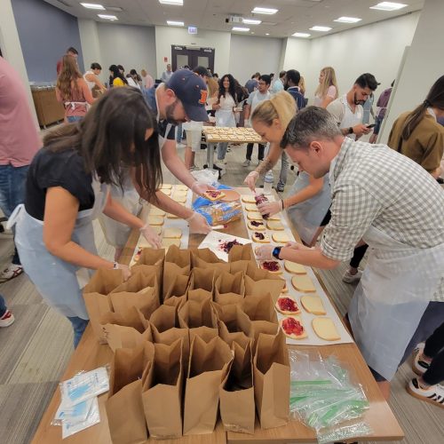 Recipe for Success facilitators will help participants better comprehend the nature of the issue of hunger in the U.S. through a brief interactive introduction on the topic. Then, teams get cooking!! Teams will complete the following 3 tasks (The Cooking Competition, The Great PB&J Challenge, & Food Bag Donation) each with a competitive twist that will keep participants on their toes!