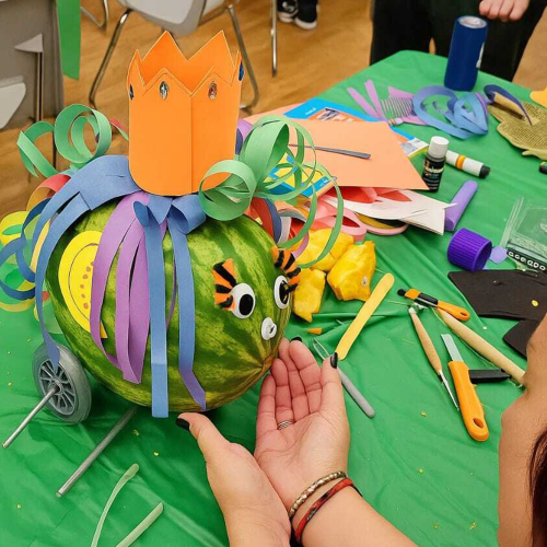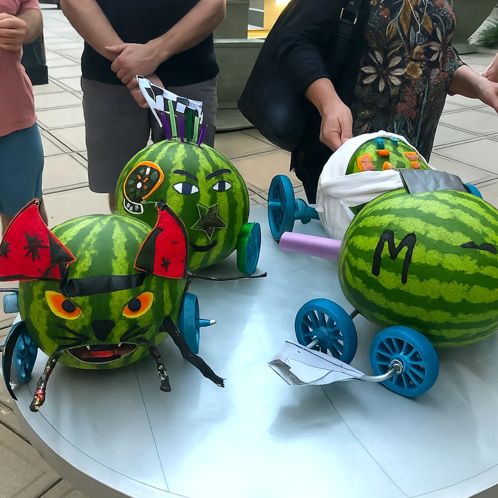 Teams kick things off by coming up with a creative team name, racer concept, and custom “sponsor” branding. Then it’s time to get hands-on—each group assembles and decorates their watermelon racer using provided kits and plenty of imagination. Whether your team leans into style, speed, or silliness, every watermelon must meet one requirement: it has to roll on two independent axles!